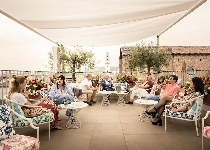 O hotel de 5 estrelas está localizado a apenas 550 metros da Casa de Julieta, bem ao virar da esquina de da Casa de Romeu. Um lugar popular em Verona é a Basílica de São Zeno, que está a 25 minutos de distância a pé. O Due Torri Hotel também está localizado a apenas 250 metros das Catacumbas Scaliger. A estação do teleférico Funicolare di Castel San Pietro está a 15 minutos de distância a pé.